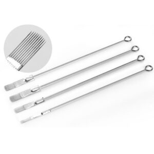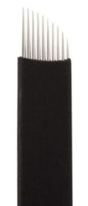 Les aiguilles de ce type de lames sont plus fines avec au plus 0.16 mm de diamètre. Cette finesse permet aux artistes du microblading de réaliser un travail extrêmement fin et précis. Il faut aussi préciser qu’il existe des variantes de ce type d’aiguilles ; notamment les les nano en forme de U plat.